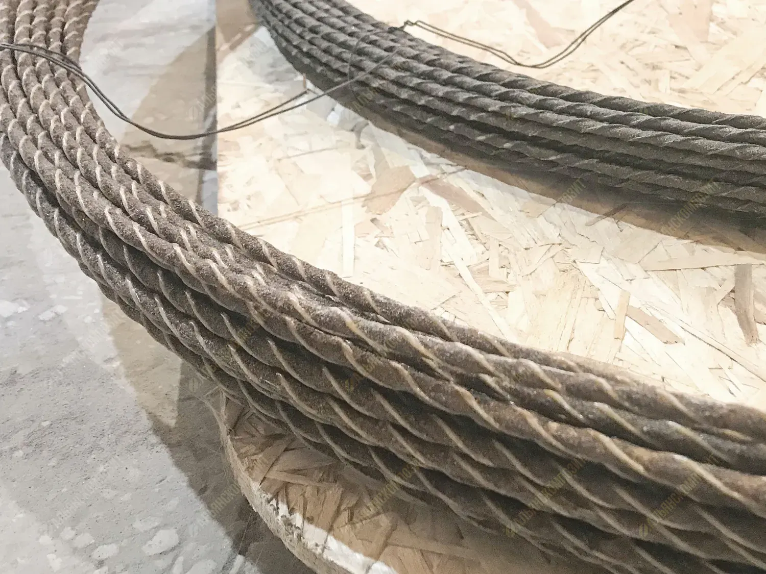 Арматура имеет внешнюю навивку из стекловолокна образуя"ребро" арматуры. Дополнительное внешнее ребро придает стержню периодический профиль, создает анкеровку в бетоне и увеличивает поверхность арматуры, что повышает сцепление стержня с бетоном.