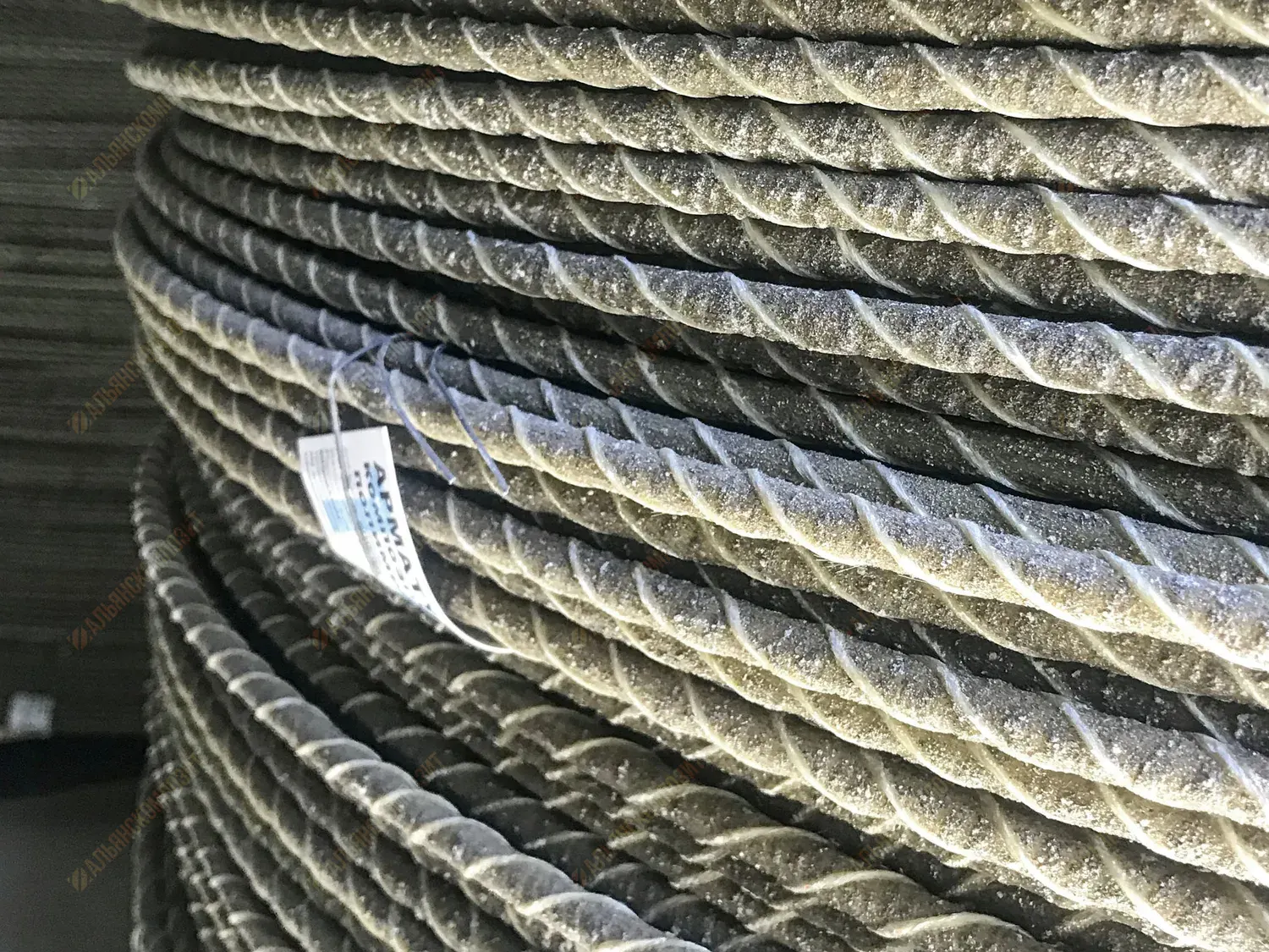 Арматура имеет внешнюю навивку из стекловолокна образуя"ребро" арматуры. Дополнительное внешнее ребро придает стержню периодический профиль, создает анкеровку в бетоне и увеличивает поверхность арматуры, что повышает сцепление стержня с бетоном.