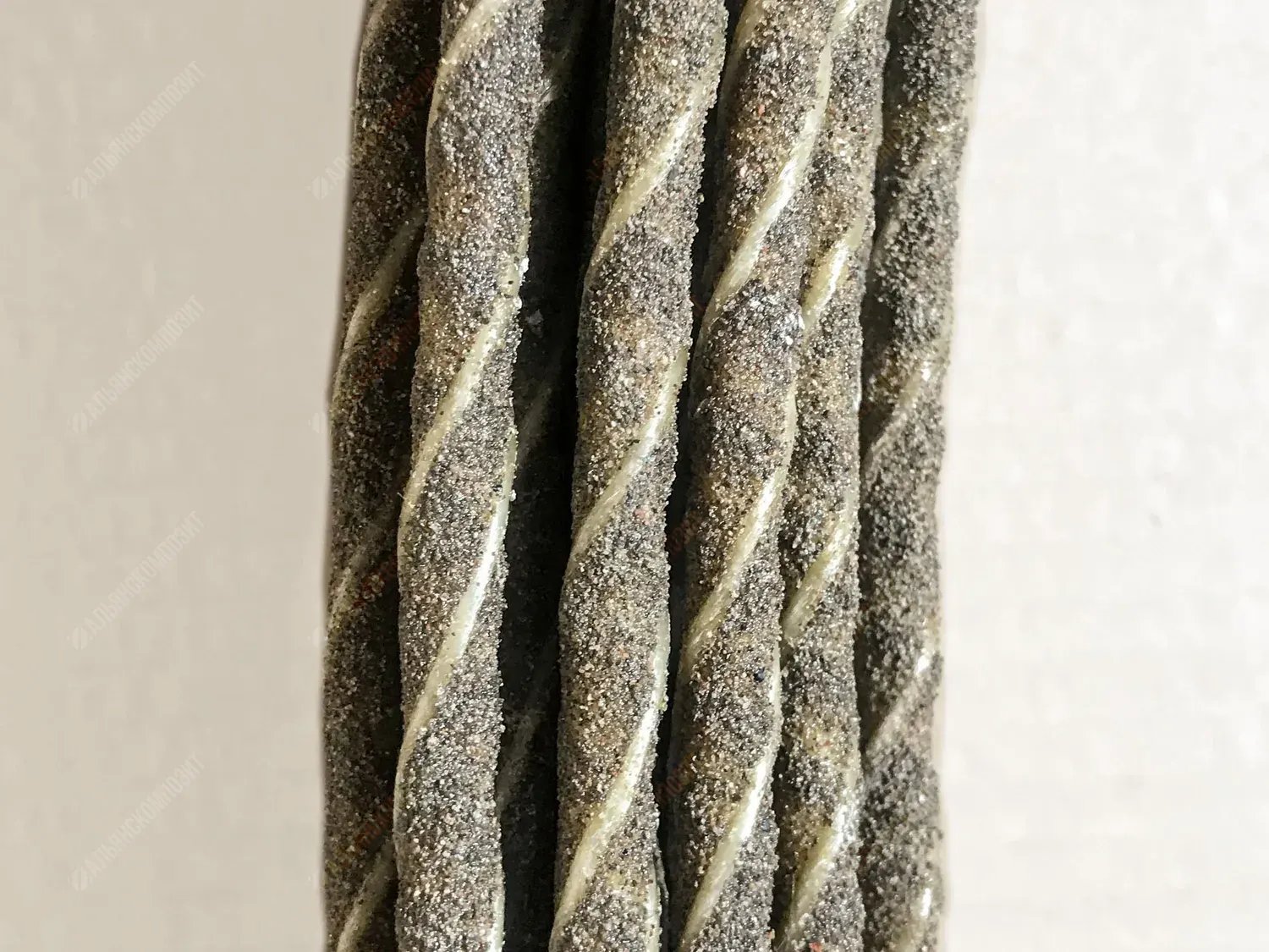 Арматура имеет внешнюю навивку из стекловолокна образуя"ребро" арматуры. Дополнительное внешнее ребро придает стержню периодический профиль, создает анкеровку в бетоне и увеличивает поверхность арматуры, что повышает сцепление стержня с бетоном.